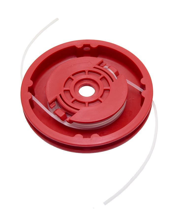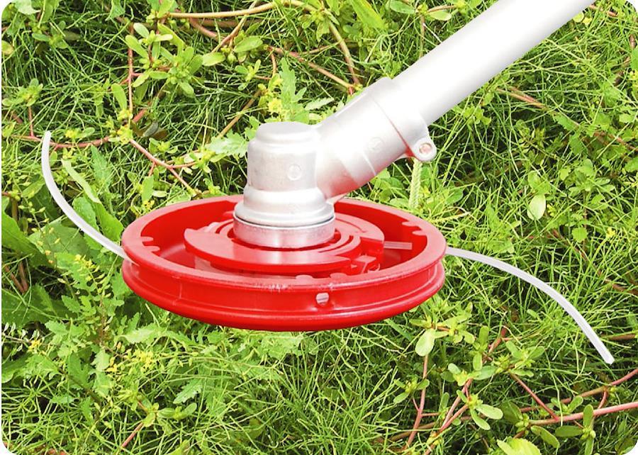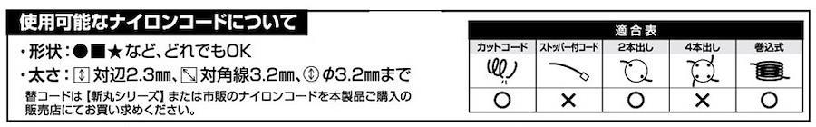 コードの長さを手動で調整地面に滑らせやすい湾曲形状ほとんどのエンジン式刈払機に取り付け可能軽量設計刈払機に取り付けたままコード交換可能市販の丸型φ3.0㎜まで、または角型2.4㎜まで使えます