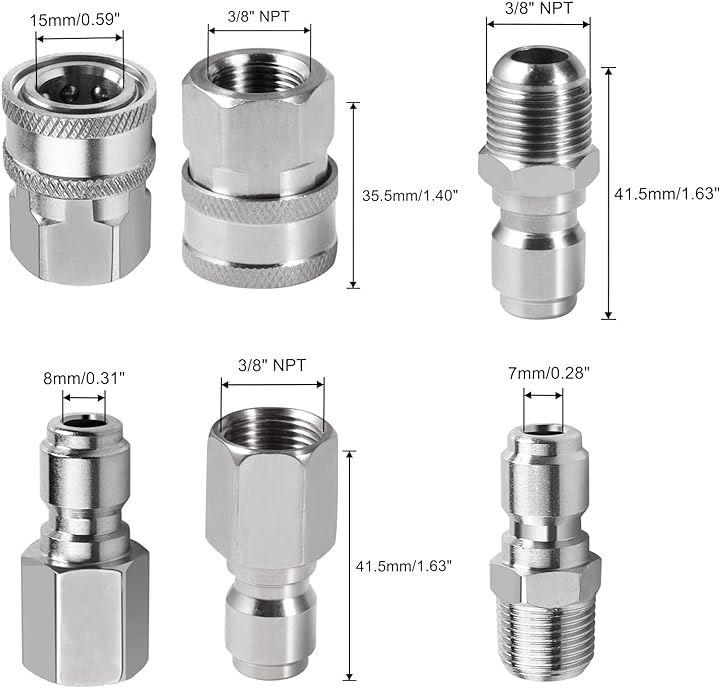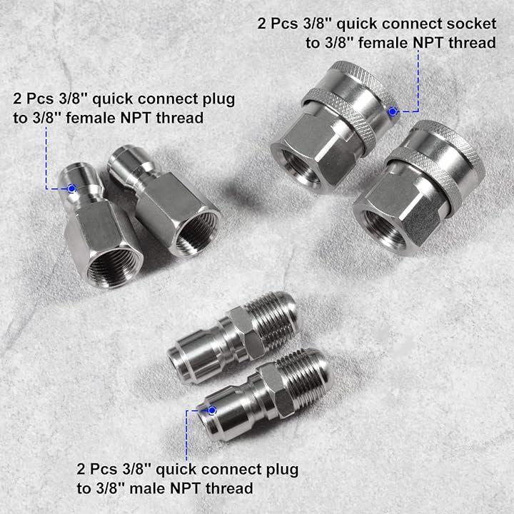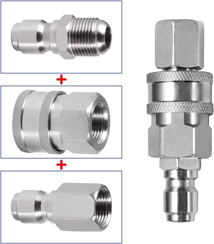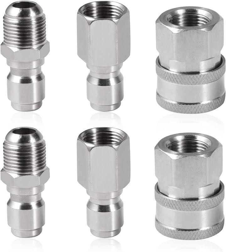 「素材」3/8クイックコネクト高圧洗浄機アダプターセットは、高品質で耐久性のあるステンレス鋼でできています。
