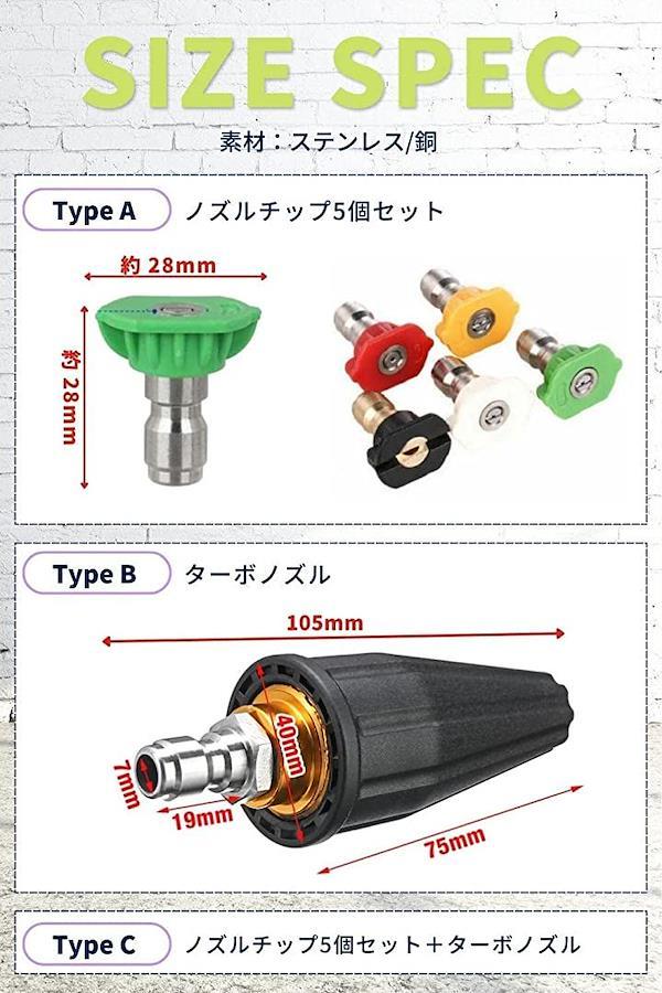 1/4インチターボノズルは付属しませんのでご注意ください。