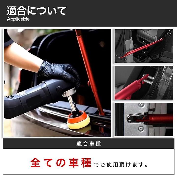 板金作業や部品交換などドアを開けた状態を保ちたい時に役立ちます。汎用 リアゲート ドア ストッパー(長さ調整可能)とオリジナルマイクロファイバータオルセットになります。