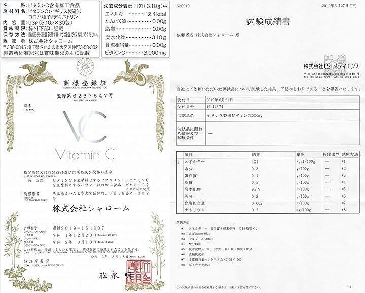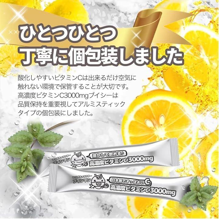 「ビタミンC含有率96%以上。1包あたりビタミンC3000mg配合した高濃度サプリ」