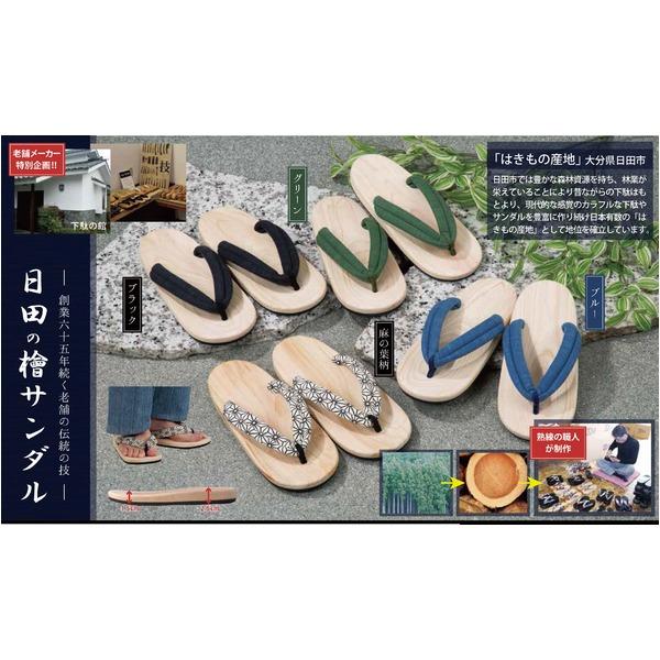 本商品はお取り寄せ商品のため、稀にご注文入れ違い等により欠品・遅延となる場合がございます。誠に恐れ入りますが、何卒ご了承ください。また、以下の場合には追加送料がかかる場合がございます。・沖縄、離島および一部地域への配送時 ・同梱区分が異なる商品の複数購入時 【同梱区分】:TS 1248 「はきもの産地」大分県日田市 日田市では豊かな森林資源を持ち、林業が 栄えていることにより昔ながらの下駄はも とより、現代的な感覚のカラフルな下駄や サンダルを豊富に作り続け日本有数の「は きもの産地」として地位を確立しています。■材質:〔本体〕天然檜〔底〕EVA ゴム〔鼻緒〕ブラック/ ブルー/グリーン:綿 ■サイズ / 重量:〔メンズ〕約 26×10.5×1.5~2.5cm(片足) / 約 420g ■生産国:日本製