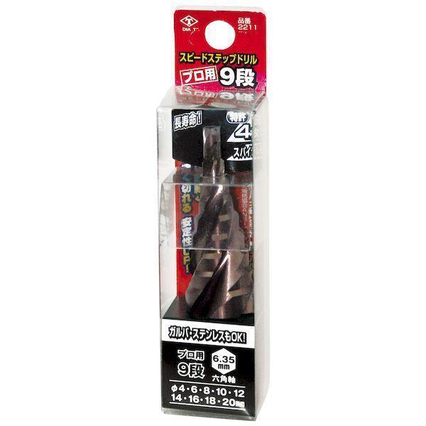 ●用途:ステンレス・ガルバ・難削材・一般鋼材・軽金属・アルミ・プラスティック・銅・木材などの穴あけ作業に!高芝ギムネ製作所 2211 DIA-T 六角軸 スピードステップドリル9段 サイズ:4.6..8.10.12.14.16.18.20mm 4989586135367 ドリル類 作業道具
