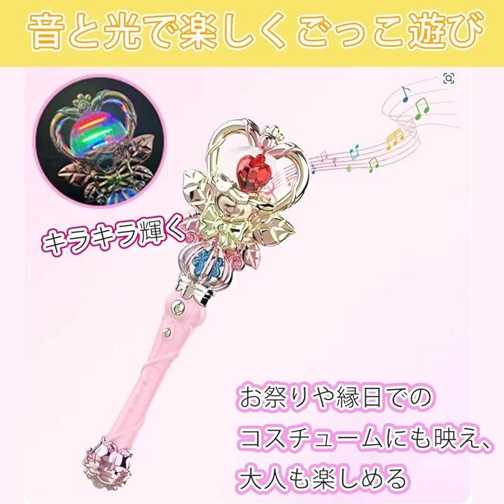 お子様の夢を叶える、光と音のギミックが詰まった魔法のステッキです。