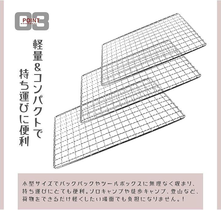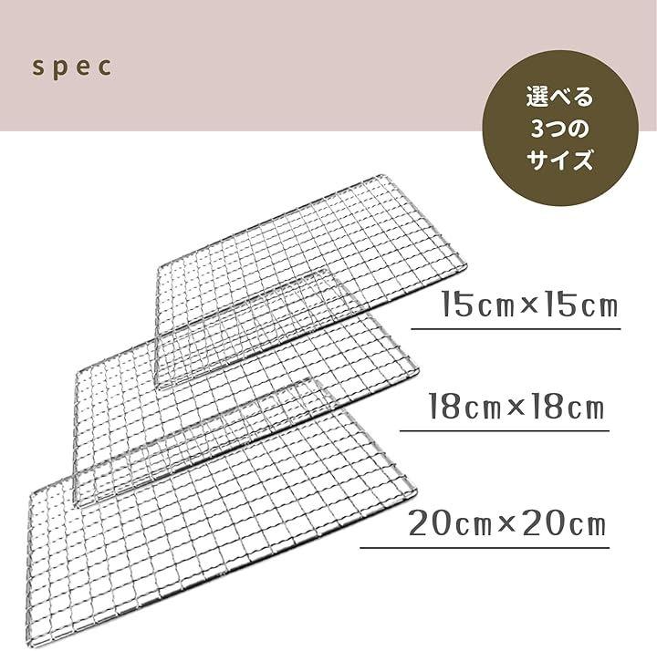 「コンパクトでも本格仕様。焼き網」卓上コンロやミニ七輪、ガスコンロ、焚き火台など幅広い熱源で使用できる、使い勝手抜群の正方形焼き網。