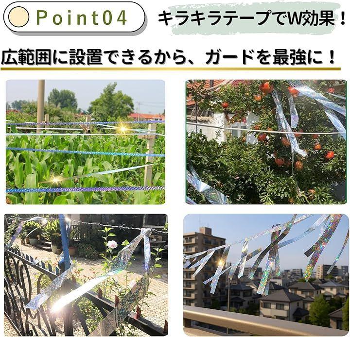 また、付属のキラキラテープを併せて設置することで、更に防鳥の期待ができます。