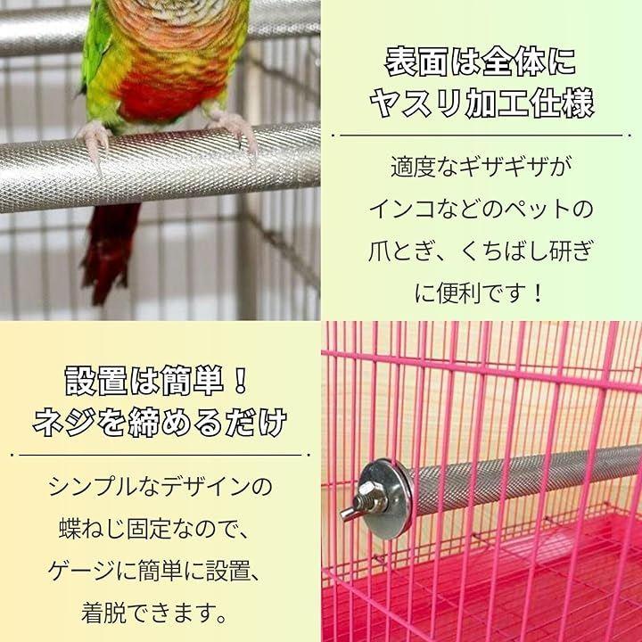 ・ステンレス製の、ストレートタイプの爪とぎパーチは、表面全体にヤスリ加工がされているので、インコなどのペットの爪とぎ、くちばし研ぎに便利です。