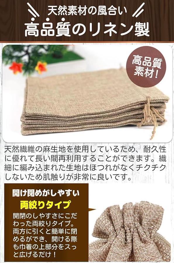 「高品質のリネン製」天然繊維の麻生地を使用しているため、耐久性に優れて長い間再利用することができます。