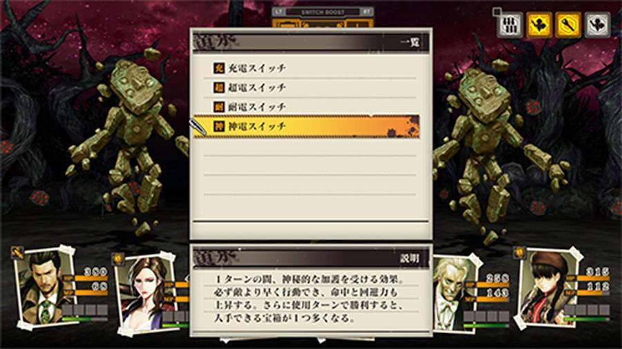 「消耗なくスキルを使える:超電」「ダメージを半減させる:耐電」「先制攻撃できる神電」、地下探行士に与えらた3種の能力。パーティや状況にあわせ、臨機応変に活用することで、戦況を有利に進めることができる。神電を使ったターンで戦闘に勝利すると、宝箱の入手数が増加!