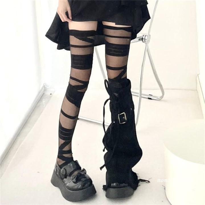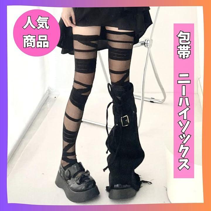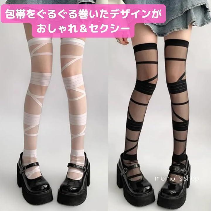 「お得な2点セット」包帯柄オーバーニーハイソックス ブラックxホワイト