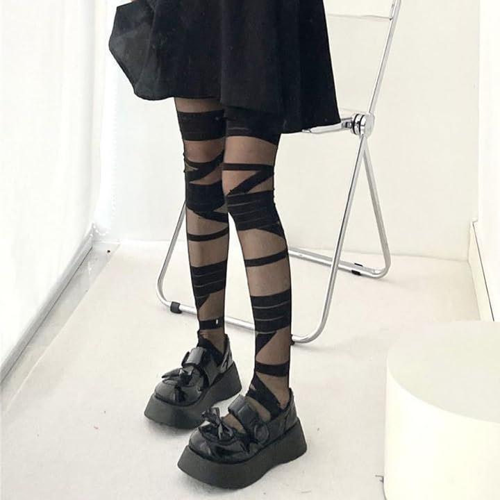 包帯柄が目を惹くデザイン: 透け感のある素材と包帯柄が、可愛らしさとセクシーさを両立。