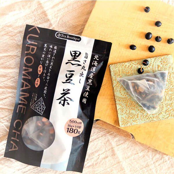 旨さ丸出し黒豆茶は厳選された北海道産の『光黒豆』を石釜で二度煎り、味わい深い香ばし仕立て。