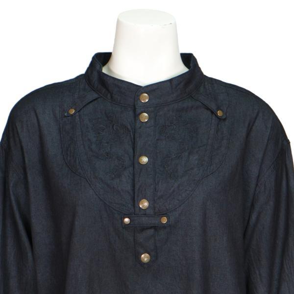 龍の刺繍をあしらったヘンリーネックシャツ。