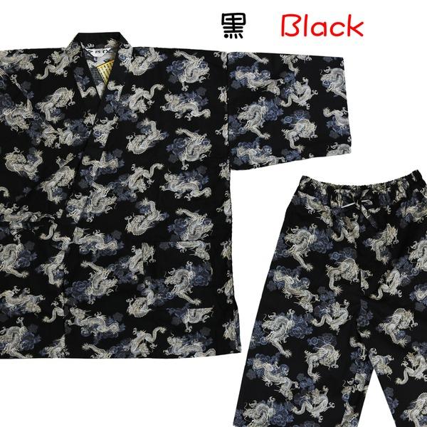 龍総柄甚平!素材は清涼感のある先染めしじら素材!