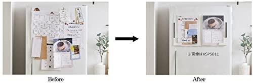 【特長】○プリントや封筒、はがき、カードなど、散らかりがちなあれこれを、ハルファイルに収納することで、すっきりと整理できます。○冷蔵庫や玄関ドアなどに吸盤で貼り付け、様々な書類の整理収納ができます。○見開きで貼り付ければ、書類の閲覧が簡単に。※「スタンダード」「スリム」「クリップ」は見開きで貼り付けできます。○表紙を閉じれば、ホワイトボードのように使用できます。さらに、折り畳めるペンホルダーも付いています。※「ポケット」タイプにはペンホルダーは付いていません。○タイル、ホーロー、冷蔵庫の扉などに繰り返し貼ったりはがしたりして使用できます。○本体裏の吸盤穴に紐を通せば、壁掛けファイルとしても使用できます。 ※紐は付属しておりません。○別売の「ハルファイル マグネットセット KSP5000-M01」を使えば、金属面にも貼り付けが可能です。