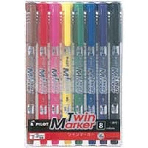 【詳細】●セット本数:8本●インキ色:ブラック・レッド・ブルー・グリーン・バイオレット・ピンク・イエロー・ブラウン●ペン先:細字0.5mm、極細字0.4mm●方式:ツインキャップ式●インキ:油性染料