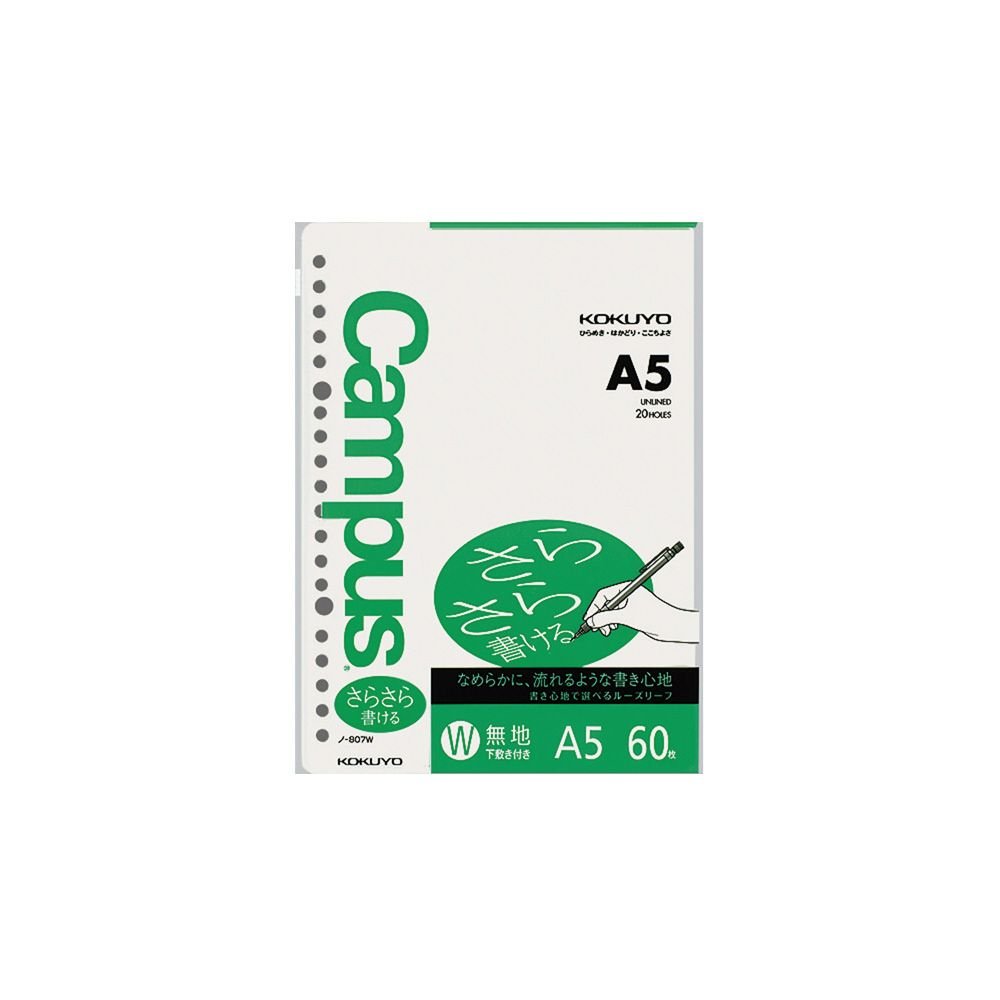 (まとめ買い) コクヨ キャンパス ルーズリーフ さらさら書ける A5 20穴 無地 60枚 ノ-807W 【×10】