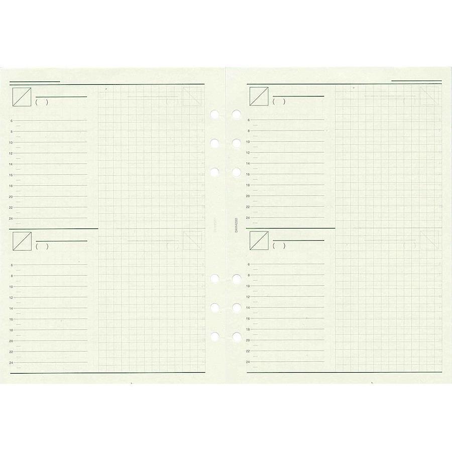 一日の記録を詳細に残すことで業務の正確性が向上。。。・日付無し。・1ページ2日(上下2段式)。・20枚入り。・本体サイズ:横148×縦210(mm)。。※ジャストリフィルサイズ対応。。規格サイズ:A5(210×148)。用紙色:クリーム色。