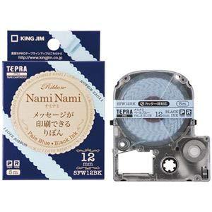 通常1-5営業日で発送【新品未開封品】【メーカー名】キングジム 【型番】SFW12BK 【ご注意事項】 ・この商品は下記内容×3セットでお届けします。 ●ラッピングに便利。 ●かんたんにオリジナルりぼんが作成できるノリのないりぼん。 ●ペールブルー地に黒文字の12mm幅のカートリッジ。 テープ種類:りぼん テープ幅:12mm テープ長さ:5m テープ色:ペールブルー 文字色:黒 備考:※印刷後は市販のハサミでカットしてください。