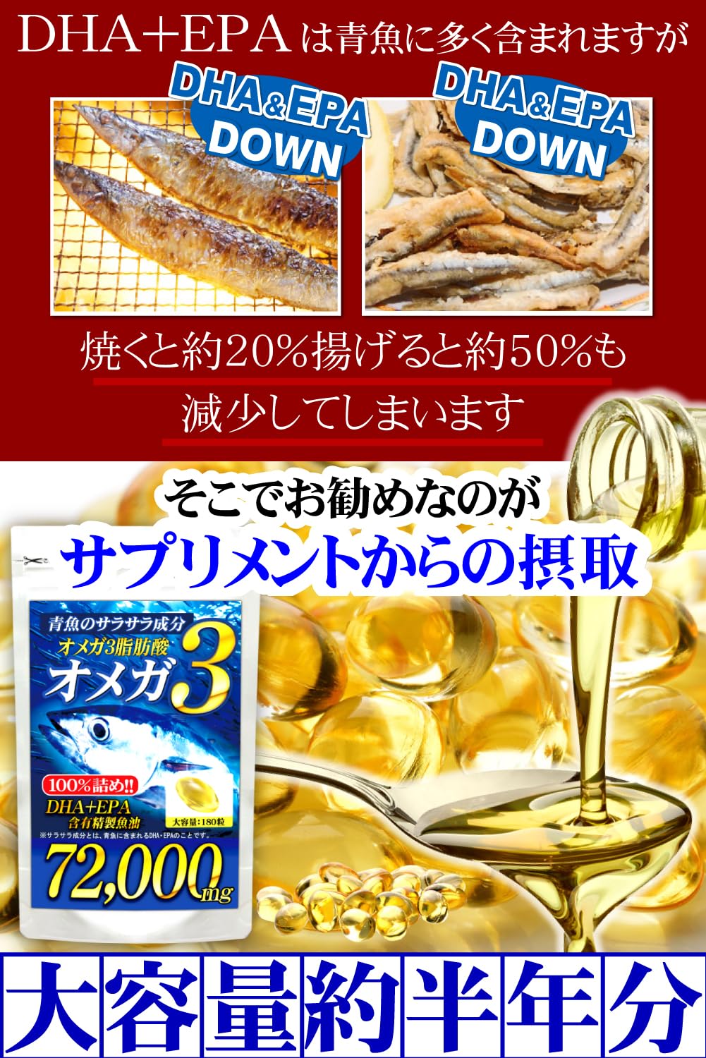 ■サイズ:??21.1x11.4x2cm;120g ??【大容量約6ヵ月/180粒】青魚de72,000 国内GMP認定工場にて製造 ??【配合量に自信!】1粒にDHA+EPA精製魚油400mg高配合!1袋ではなんと72,000mg ??DHA+EPAを一般的に多く含む青魚にこだわった原料を使用!(マグロ・カツオ・イワシ) ??【原材料名】 DHA含有精製魚油、EPA含有精製魚油/ゼラチン、グリセリン ??【内容量】106.2g【1粒の重量590mg(内容量400mg)×180粒】 【お召し上がり方】1日1粒を目安に、ぬるま湯または水とともにゆっくりお召し上がり下さい。