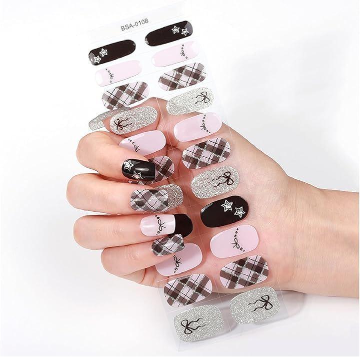 1シートに11サイズ、22枚のジェルネイルシール。 生ジェルを半硬化させたネイルシールで柔らかく伸びやすく貼りやすいです。
