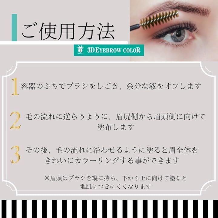 「1Week。」3Dアイブロウカラーティント/落ちないティント・1 Week.の技術を活かし誕生しました/美しい毛流れに整え、色がのりやすく、眉を立体的にカラーリング。 毛流れをスムーズに整えられるテクスチャーにこだわったアイブロウマスカラ/お湯で簡単オフ
