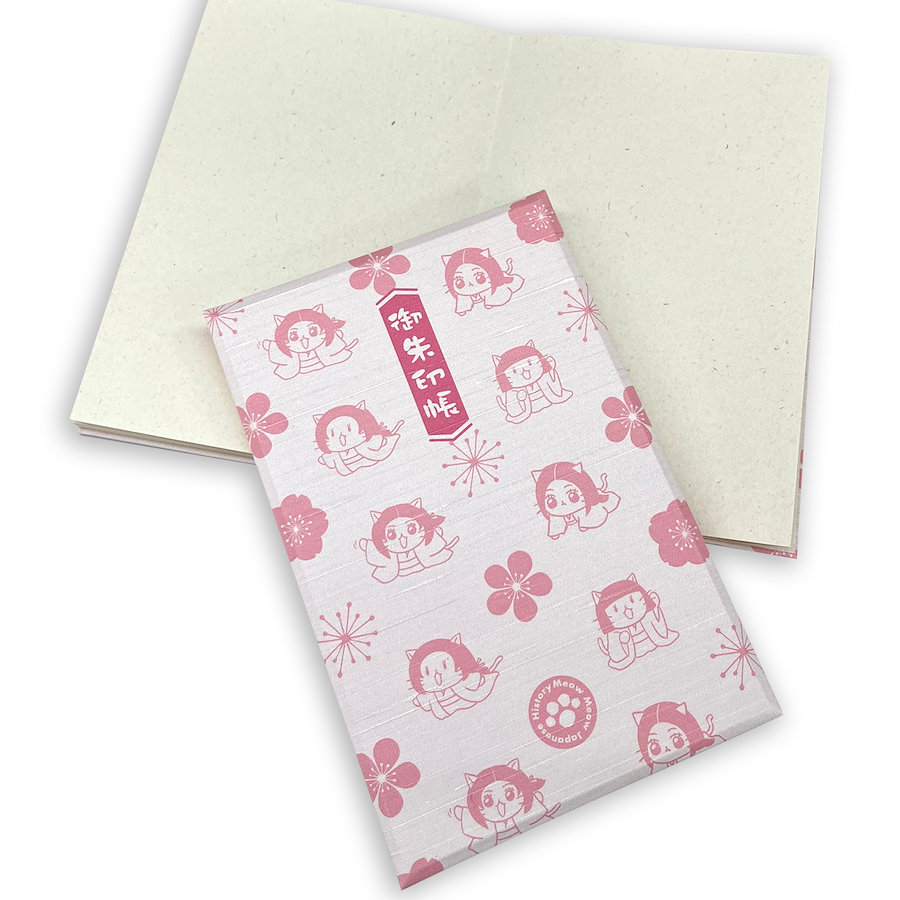 かわいい「ねこねこ日本史」のお市・浅井三姉妹のキャラクターを印刷したオリジナルの御朱印帳です。