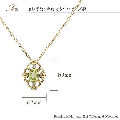 18金 ペリドット ダイアモンド ネックレス 18K イエローゴールド ギフト 誕生日祝い 贈り物 結婚記念日 嫁 女 上品 控え目 小ぶり 繊細 ペンダント 4月 8月の誕生石 オーバルカット【サイズ】・カット小豆チェーン:約40cm(約36cmでもお使い頂けます。) ・トップ:約7mm×9mm ・ペリドット:約3mm×4mm ・ダイヤモンド:約1.1mm【地金・素材】・ペリドット オーバルカット ・ダイヤモンド トータル0.01ct ・地金:K18YG(18金イエローゴールド) ※日本製(日本国内の工房で製作しています。)※品質保証書が付属します。※おリボンをかけたギフト用ケースに入れお届けいたしますのでプレゼントにもオススメ。(ショッピングバック付き)