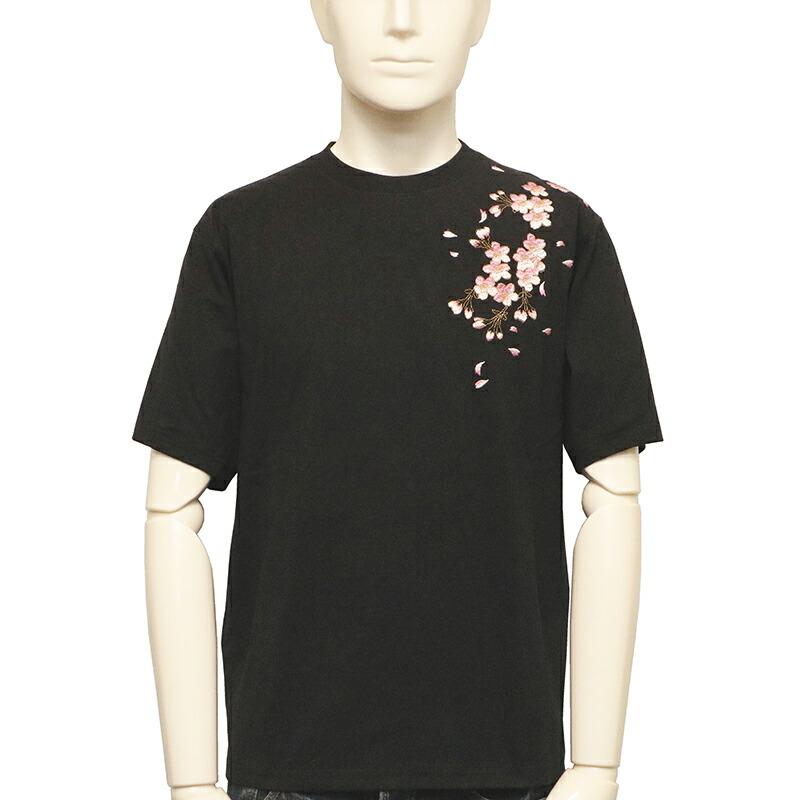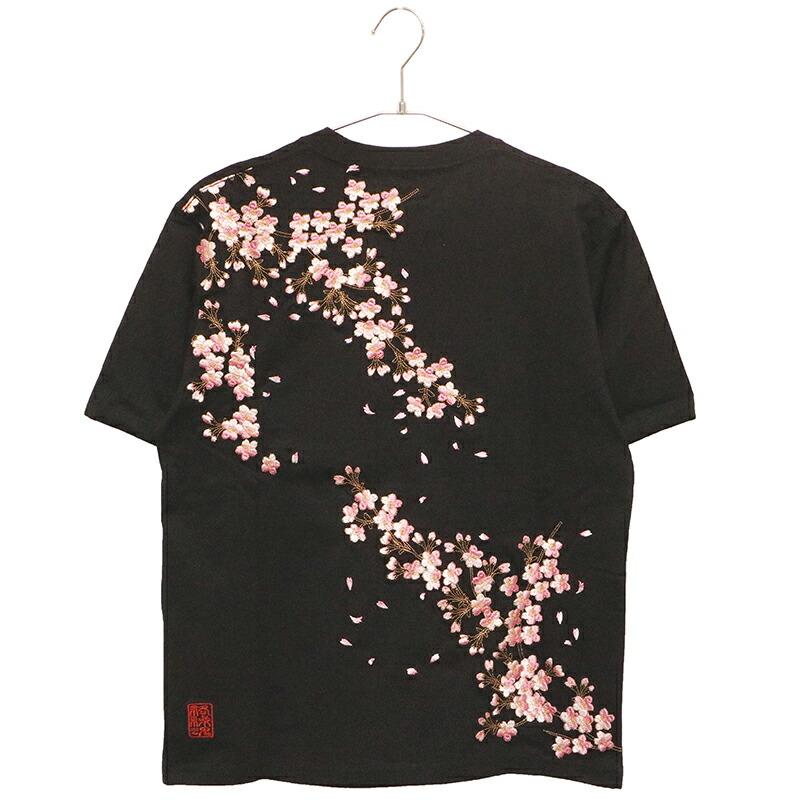 【商品名】枝垂桜 柄 刺繍 和柄 半袖Tシャツ