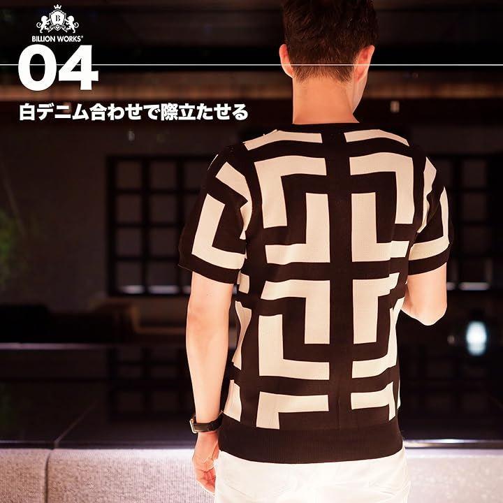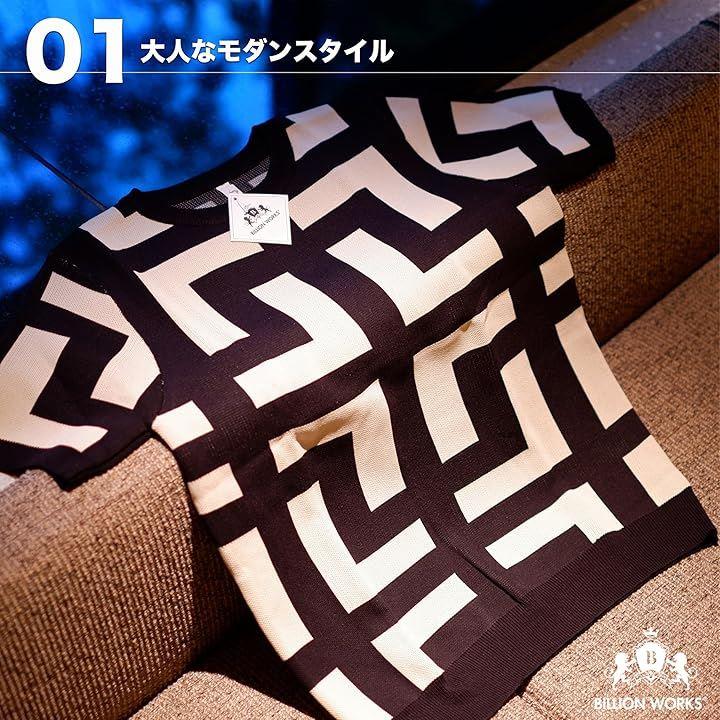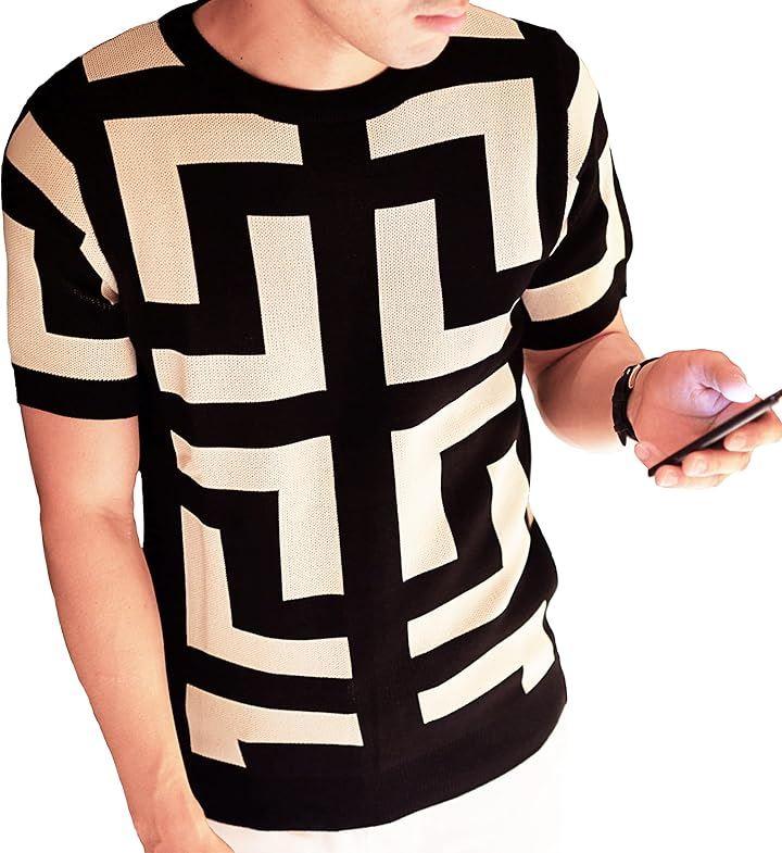 「デザイン」とてもおしゃれでかっこいい洗練されたデザインの半袖ニットTシャツ。 柄シャツでは珍しい幾何学デザイン。