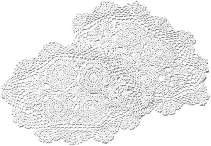 手編みの綿レース、レトロ調、使いやすい大きさの楕円形レースクロスです。
