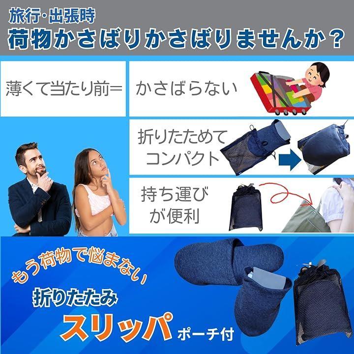 「驚くほどコンパクト、荷物にならない携帯性」旅行や出張の荷造りで「スリッパはかさばる…」と諦めていませんか?このスリッパは軽量素材を使用し、簡単に折りたたんで付属の専用ポーチにすっきり収納できます。