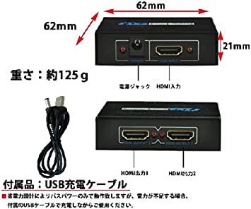 通常1-5営業日で発送:1入力2出力 HDMI分配器 1×2 HDMIスプリッター 2台のHDMI搭載機器に出力可能 フルハイビジョン 3D 対応 1.4verコネクタタイプ HDMIブランド ノーブランド品ケーブルタイプ HDMIポート数 2商品の寸法 6.2D x 6.2W x 2.1H cm1入力2出力 HDMI分配器一台のHDMI出力端子付きプレーヤーから2台のHDMI搭載液晶テレビやモニタに出力可能バージョン:1.4ver