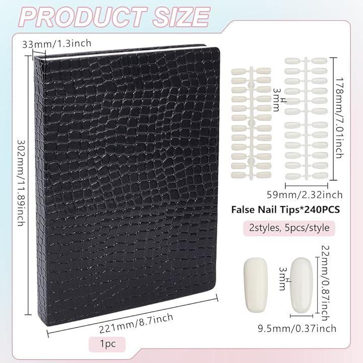 BENECREAT 黒ワニプリントネイルサンプルディスプレイ見本帳1冊と480枚2スタイルネイルチップです。