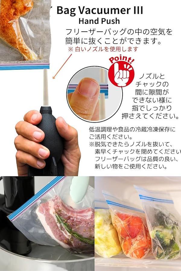 用途 : 低温調理の空気抜き、食品の冷蔵・冷凍保存、お菓子やペットフードの小分け保存。