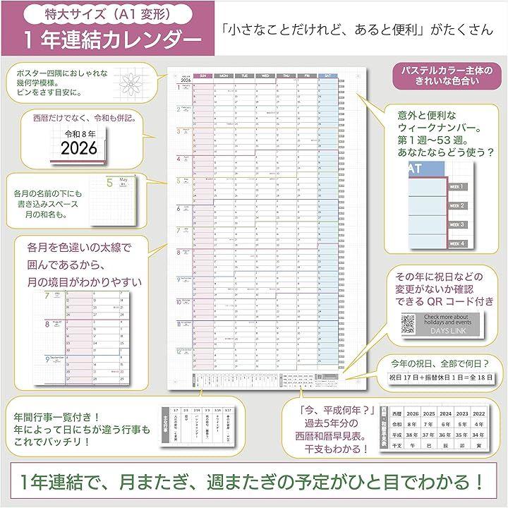 シンプルだけど、あると便利な機能をたくさん集めた年間カレンダー。