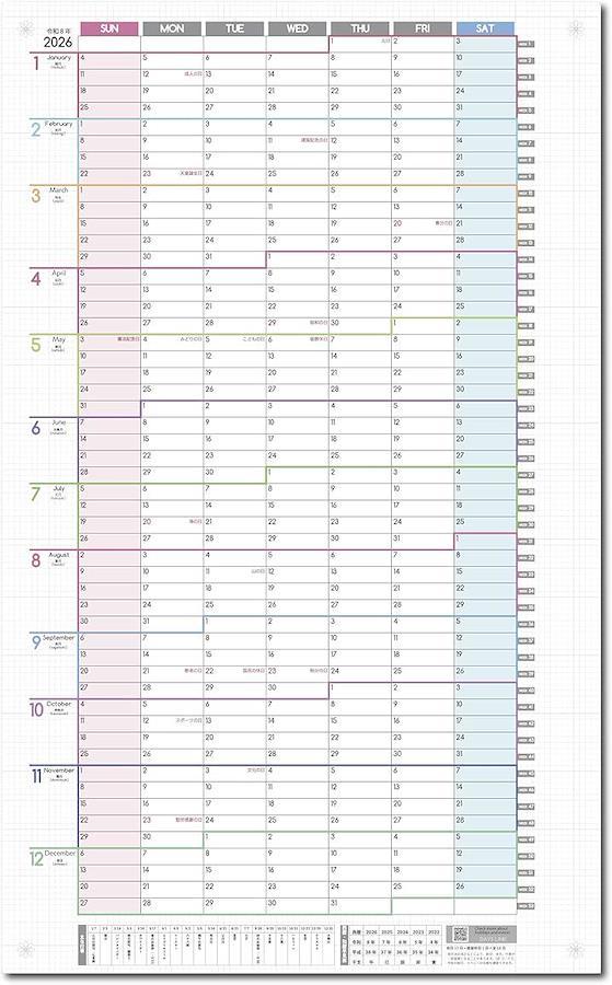 年間スケジュールがたてやすい、ウィークナンバー付き。