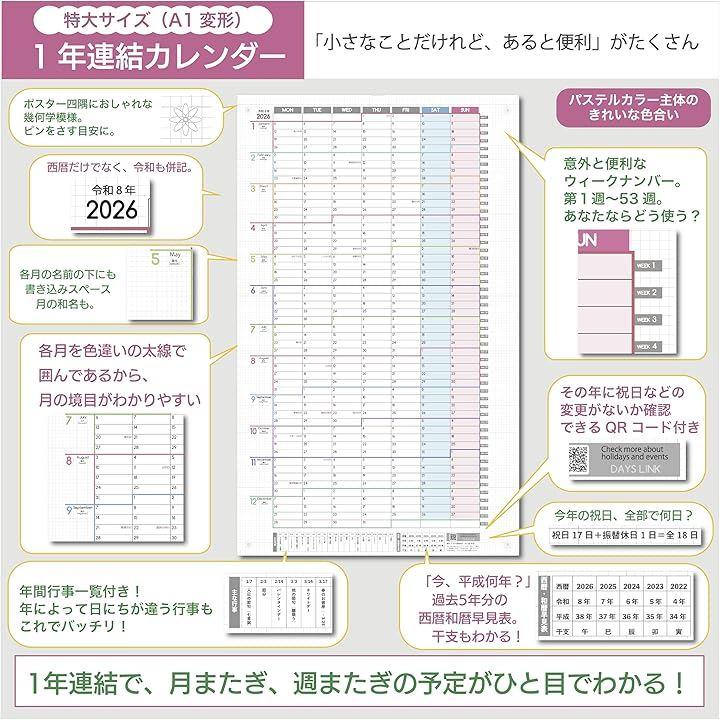 シンプルだけど、あると便利な機能をたくさん集めた年間カレンダー。