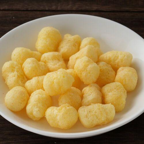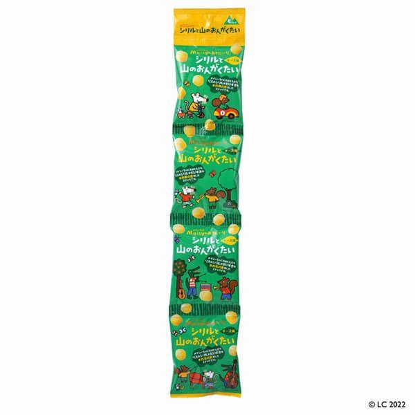 メイシーちゃんのおきにいりシリルと山のおんがくたいはメイシーちゃんのおともだちリスの「シリル」がだいすきな、まんまるかわいい木の実の形をしたチーズ風味のコーンスナックです。