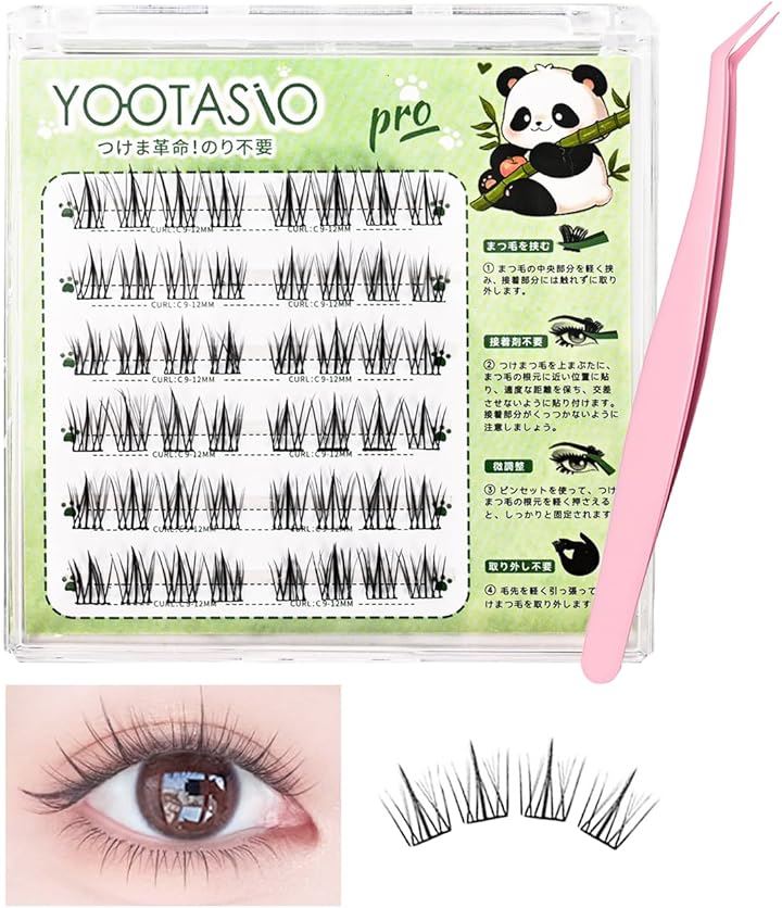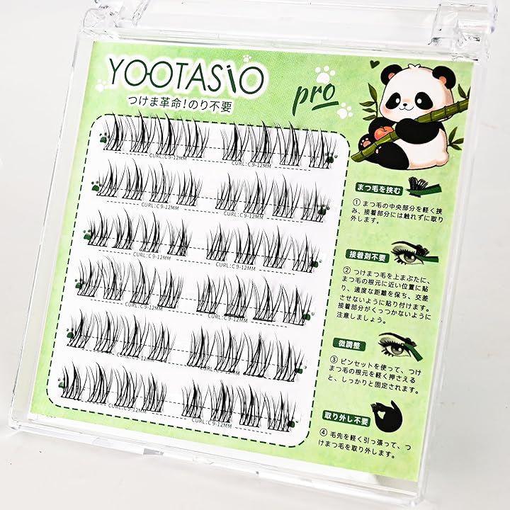 YOOTASIO すぐに使える グルーなしシリーズ 接着剤不要 落ちにくい --- 使用方法: (1) まつ毛の中央部分を軽く挟み、接着部分には触れずに取り外します。