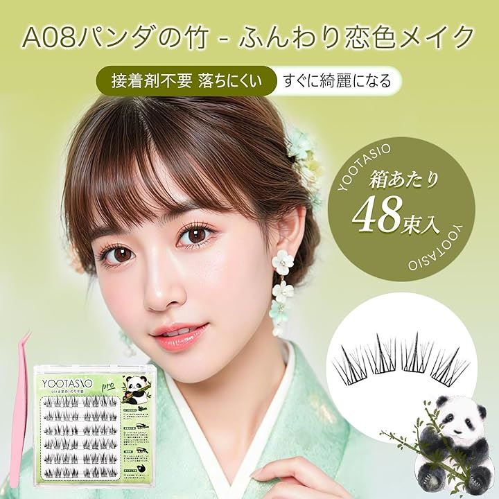 色: A08パンダの竹 - ふんわり恋色メイク サイズ: 6列定番人気タイプ+ナノピンセット |
