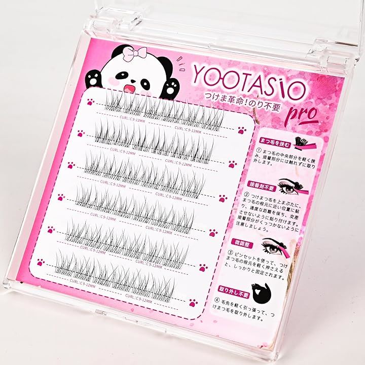 YOOTASIO すぐに使える グルーなしシリーズ 接着剤不要 落ちにくい --- 使用方法: (1) まつ毛の中央部分を軽く挟み、接着部分には触れずに取り外します。