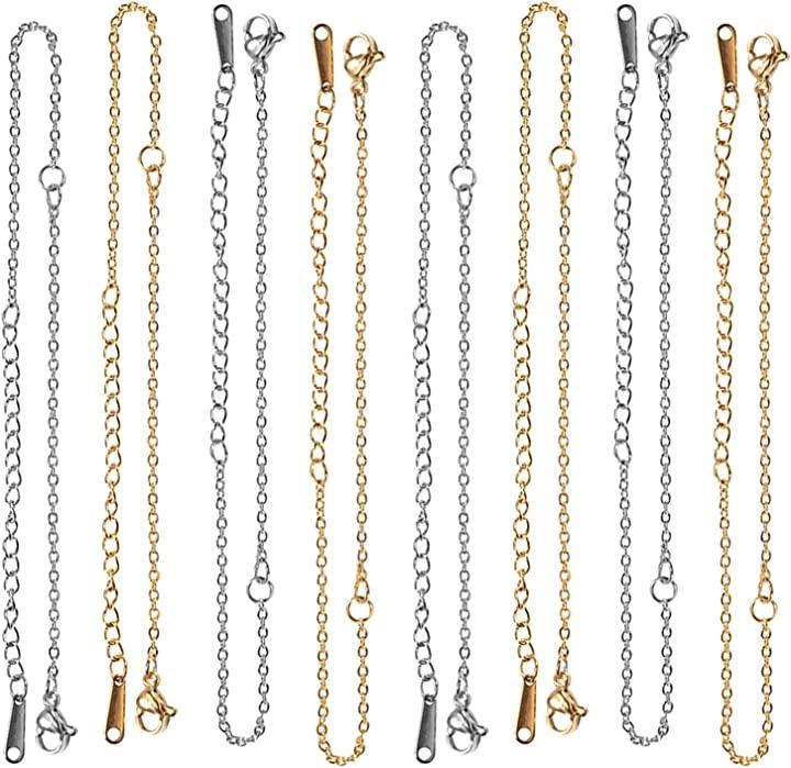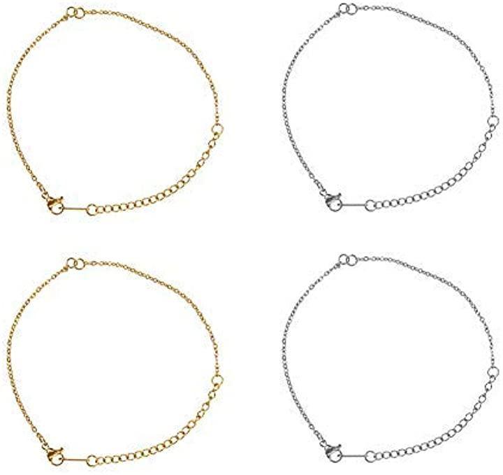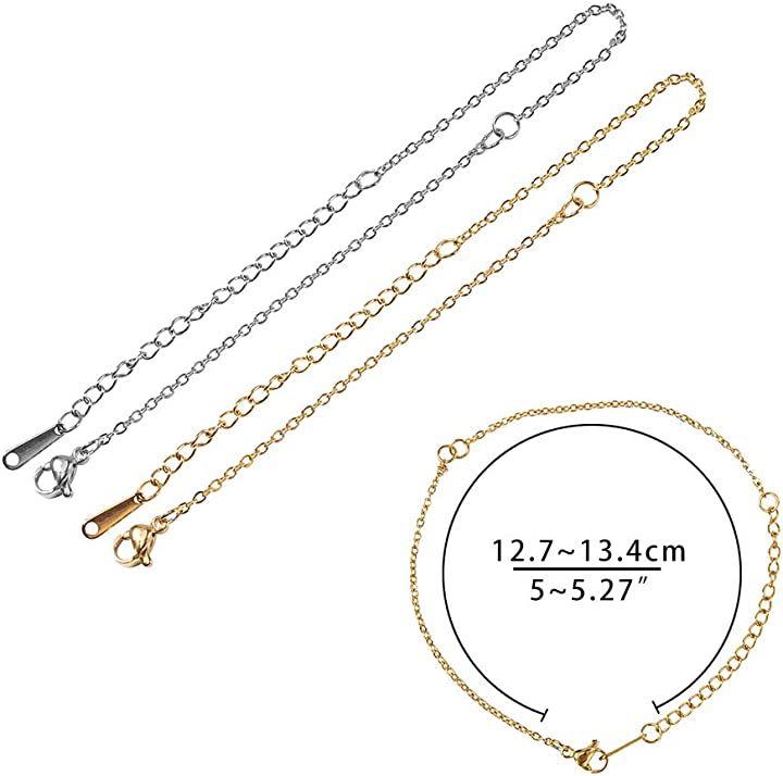 ・❤サイズ&入り数❤:ブレスレット:幅:1.5mm、 長さ:12.7~13.4cm、穴径:1.5mm、延長チェーン:60mm;5本/毎色;10本入り;色:ステンレススチール色;素材:201ステンレススチール;想像力によりおしゃれなバングルとブレスレットなどジュエリーがDIYできます。