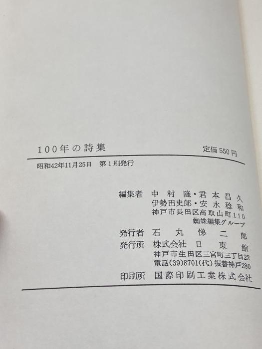 商品名:100年の詩集 兵庫・神戸・詩人の歩み 蜘蛛編集グループ編 日東館 、昭42