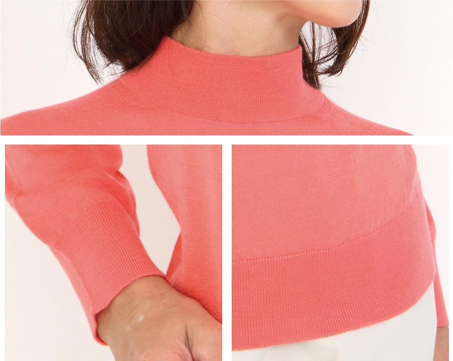 他ではあまり見かけないハイゲージ。60番手という細い糸番手を使い、18ゲージで編み上げたハイクオリティーカシミヤニット