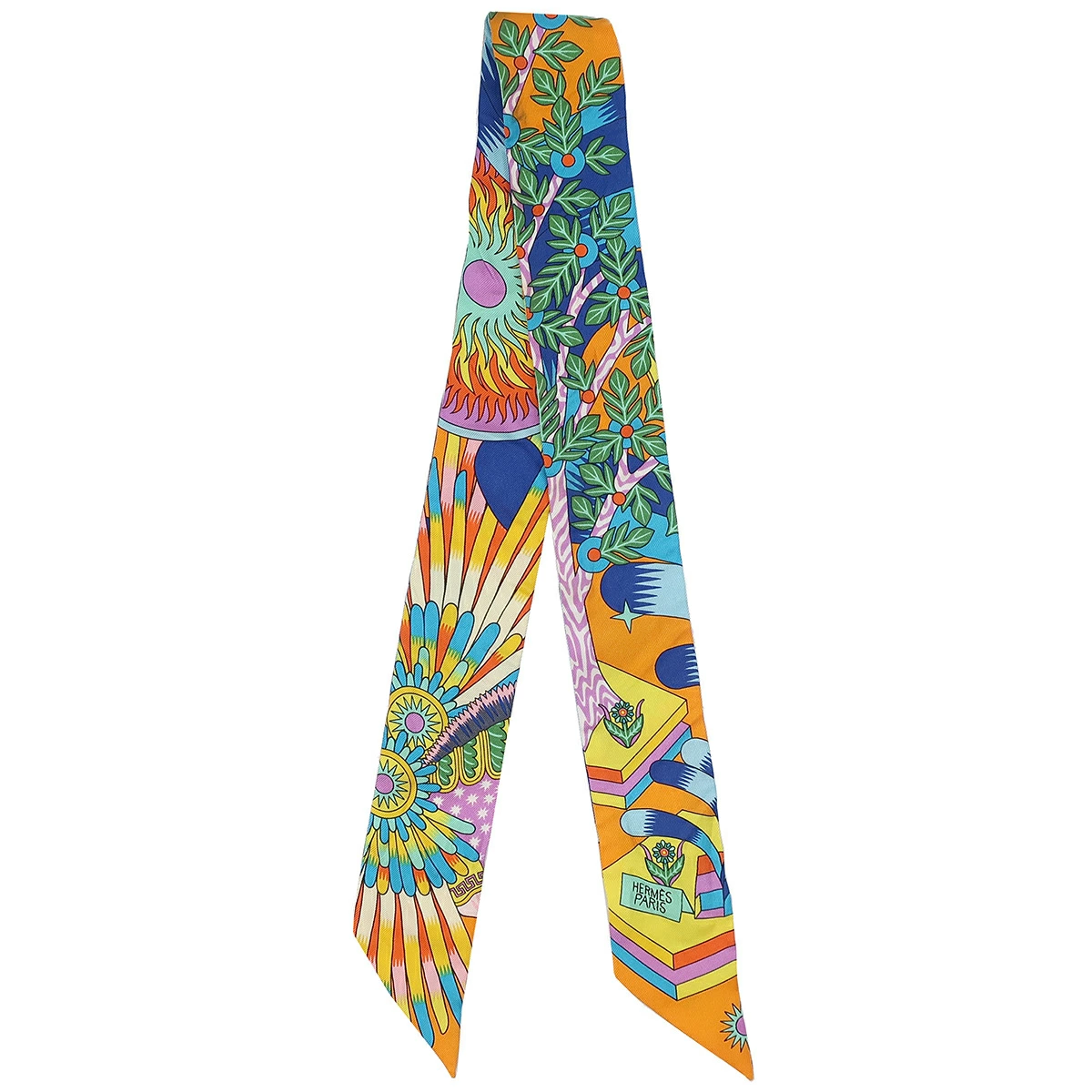 エルメス HERMES ツイリー ツイリー スカーフ シルク オレンジヴィフ×ジョーヌヴィフ 【LA SOURCE DE PEGASE/ペガサスの源泉】 - レディース 【箱】定番 人気 美品 【中古】