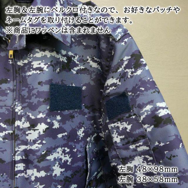 商品名:【ポイント10倍】 海上自衛隊グッズ 防寒ブルゾン ( 海上自衛隊デジタル迷彩柄 ★襟ボア付き ) 防寒着 ミリタリー アウトドア ジャケット メンズ アウター海上自衛隊デジタル迷彩柄の中綿入り防寒ブルゾンです。1サイズ~2サイズ大きめの作りになっておりますのでサイズご確認の上ご注文下さい。取り外し可能な【襟ボア】付きです。サイズ:S/M/L/LL/3L/4L※1サイズ~2サイズ大きめの作りになっております。素材:ポリエステル100%・中綿入り<サイズ表(仕上がり寸法)・cm>4L:胸囲145・肩幅58・着丈75・袖丈713L:胸囲140・肩幅56・着丈73・袖丈67LL:胸囲135・肩幅54・着丈71・袖丈65L:胸囲130・肩幅52・着丈69・袖丈63M:胸囲125・肩幅50・着丈67・袖丈61S:胸囲120・肩幅48・着丈65・袖丈59SS:胸囲115・肩幅46・着丈63・袖丈57商品番号:G1510ss