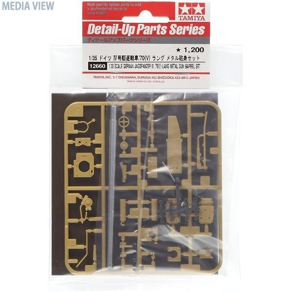 IV号駆逐戦車/70(V) ラングの完成度を高めるディテールアップパーツです。 リアルなアルミ削り出し製の砲身に加え、主砲装填部や操作ハンドル、平衡機などの成形品もセットしました。 砲の上下の動きを規制する平衡機はシリンダー内部のポリキャップと金属シャフトにより可動します。 ラングの戦闘室天板を接着せずに仕上げれば、完成後も室内を鑑賞できます。