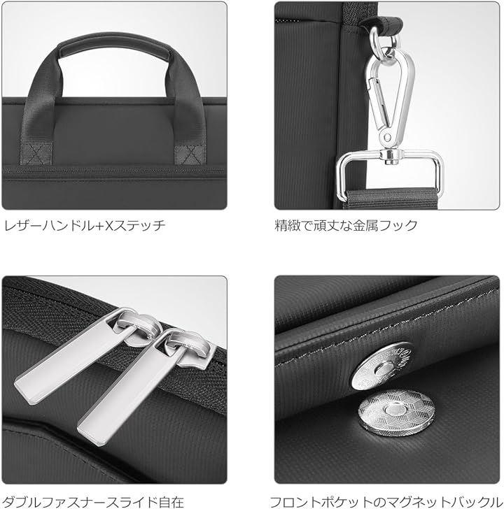 「使い勝手の良さ」:滑らかで丈夫なダブルジッパーでノートパソコンに簡単にアクセスできます;PUレザーハンドルとショルダーストラップが付いており、ハンドバッグまたはショルダーバッグとして使用できます;自分の快適な方法でコンピュータを持ち運ぶための複数のオプション;スーツケースのハンドルに取り付けられる荷物ベルトが付いており、手を自由にすることができます。