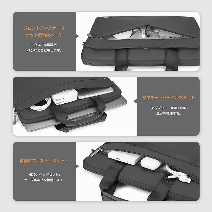 「複数のポケット」:1つのメインコンパートメント、ノートパソコンを保持します;2つのフロントポケット:(1つのジップポケットには2つのインナースリップポケット、2つのペンポケット、1つの磁気バックルポケットが含まれています)ノートパソコン用アクセサリー(電源アダプター、充電器、マウス、ケーブル、iPadタブレット、Magic Keyboard、AirPodsなど);背面に1つのジップポケットがあり、携帯電話、パワーバンク、その他の小物を収納できます。
